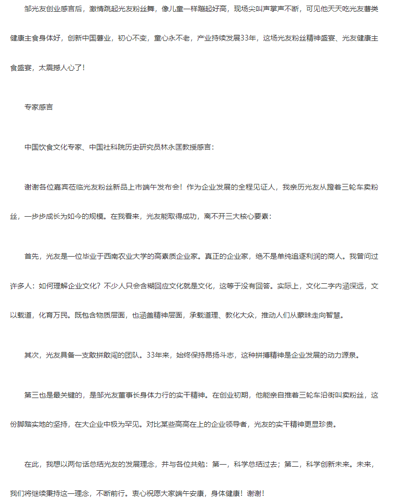 轉(zhuǎn)載中華網(wǎng)——光友酸辣粉 光友綿陽米粉低GI薯類健康主食 北京新聞發(fā)布轟動全球